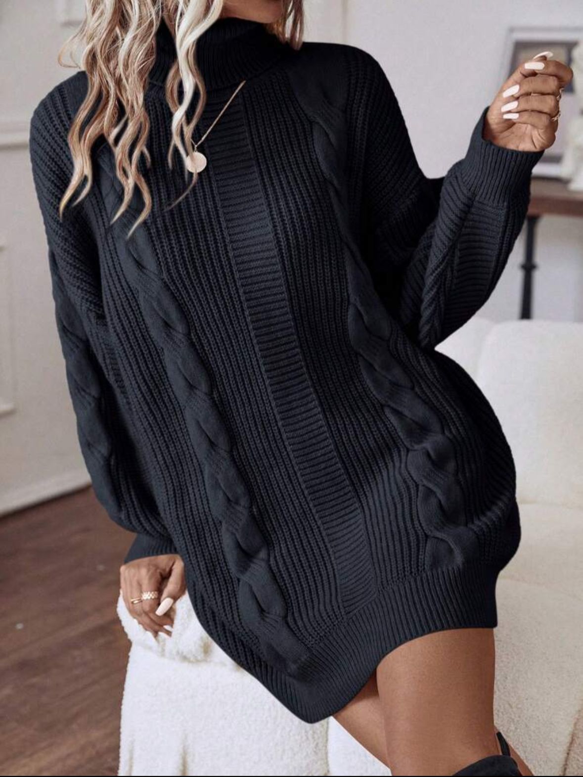 Stay warm and stylish in this gorgeous cable-knit sweater dress ✨🧶