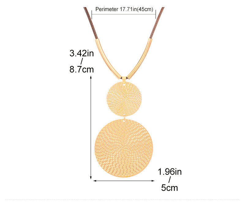 This elegant jewelry set features a textured double-disc pendant with matching earrings.π« The metallic finish adds a sophisticated modern touch.π Designed to complement both casual and formal looks. Available in gold and silver tones for versatile styling.π